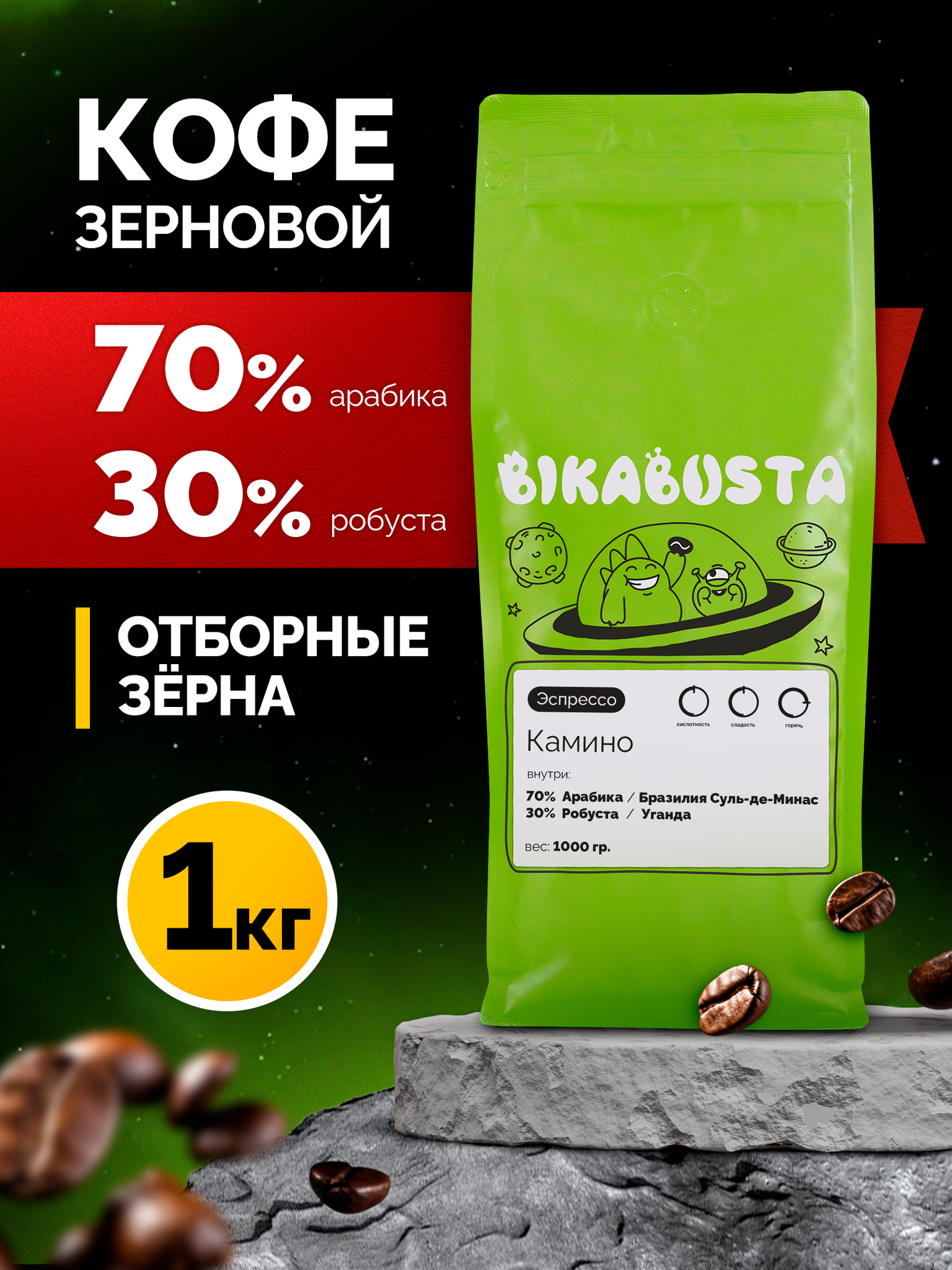 Кофе в зернах BIKABUSTA Арабика 70% / Робуста 30%, 1 кг.